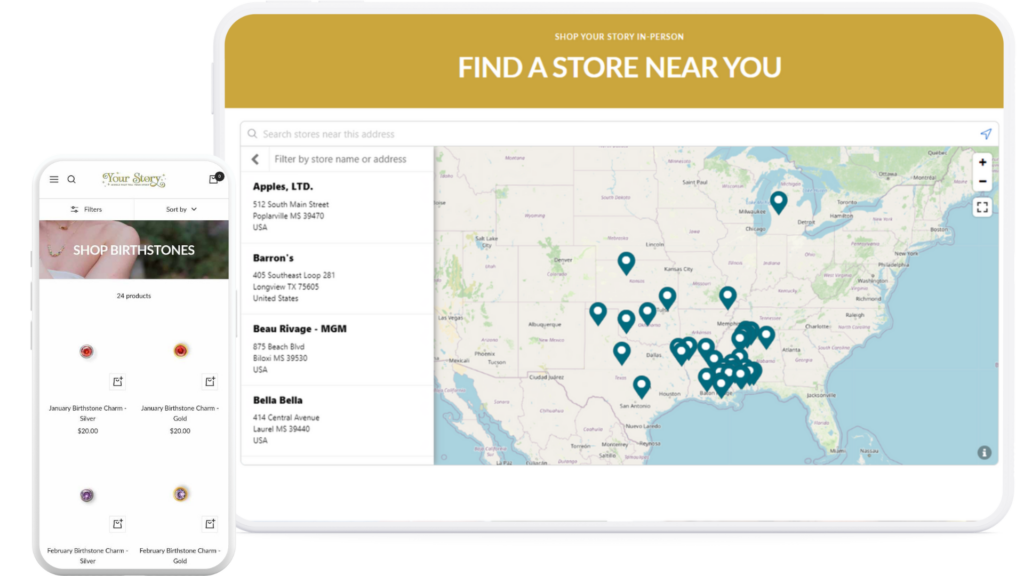 As Your Story continues to expand to retail locations, we wanted to support the businesses that carry them. By adding an interactive location finder in their website design, customers can easily make their way to a local store and build their custom charm bracelet there!